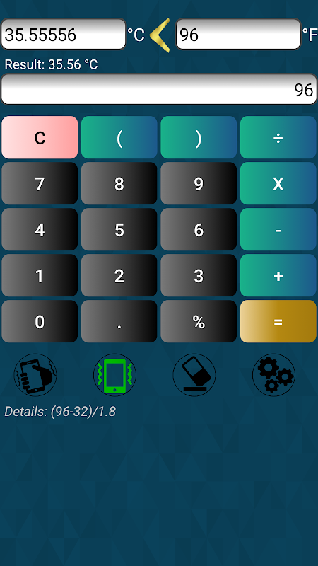 यह एप्लिकेशन एक कैलकुलेटर भी है, आप रूपांतरण से पहले गणना कर सकते हैं।