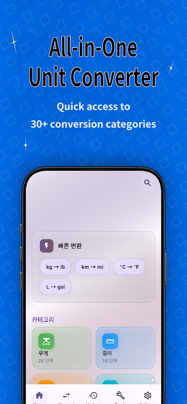 वजन, लंबाई, क्षेत्रफल, आयतन, तापमान, गति, समय, डेटा, खाना पकाना, मुद्रा और भी बहुत कुछ!