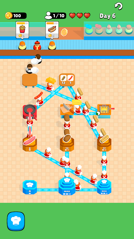 रणनीतिक रूप से सोचें और समय पर भोजन तैयार करने के लिए टावरों को सही क्रम में जोड़ें. अपने ग्राहकों को ज़्यादा देर तक इंतज़ार न करने दें!