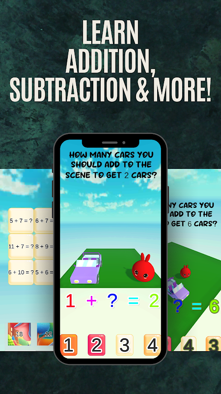 व्यापक शिक्षण और रेसिंग अनुभाग: जोड़, घटाव, गुणा और भाग सहित बुनियादी गणितीय संक्रियाओं में गोता लगाएँ. प्रत्येक ऑपरेशन में समर्पित गेम शामिल हैं, जो एक सर्वांगीण नर्सरी गणित शिक्षा सुनिश्चित करते हैं.