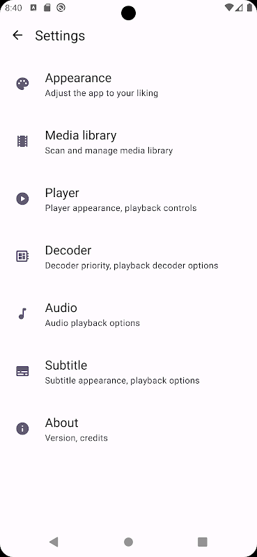 📝 बाहरी उपशीर्षक समर्थन बाहरी उपशीर्षक समर्थन के साथ अपनी पसंदीदा विदेशी फिल्मों का आनंद लें। कोर प्लेयर यह सुनिश्चित करता है कि भाषा आपके मनोरंजन में कोई बाधा न बने।
