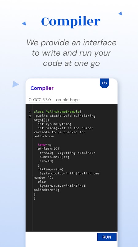 The Application helps the user in learning, understanding, & improving the programming skills.