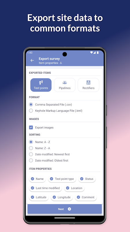 📷 छवियाँ कैप्चर करें: अपने सर्वेक्षण डेटा को बढ़ाने के लिए साइटों की तस्वीरें लें।