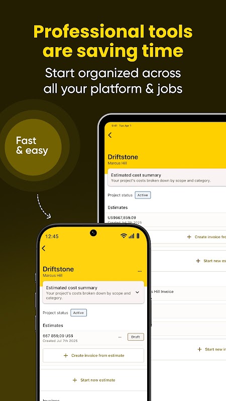 आपका ऑल-इन-वन अनुमानक, चालान और परियोजना प्रबंधन उपकरण - दुनिया बनाने वाले पेशेवरों के लिए बनाया गया।