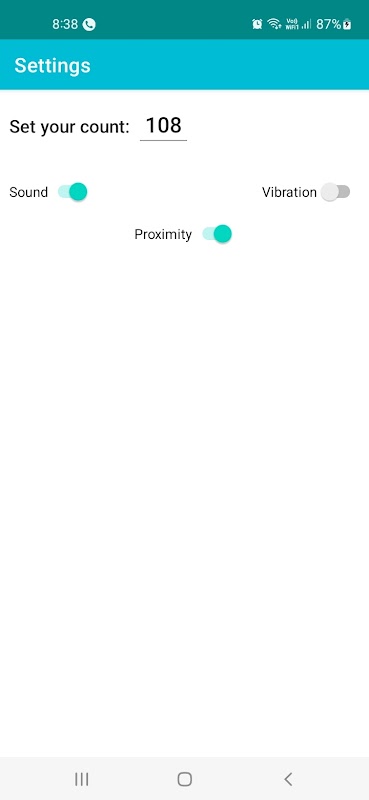 काउंट 108 ऐप में आपके दैनिक लक्ष्य को बढ़ाने के लिए सेटिंग्स शामिल हैं।