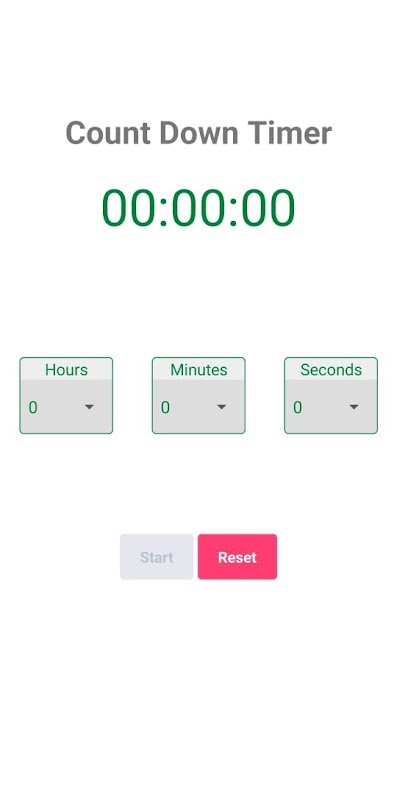 इसमें काउंट डाउन करने के लिए कितना समय चुनने के लिए सेकंड, मिनट और घंटे ड्रॉप डाउन मेनू शामिल हैं।