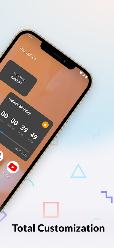 आपकी अनूठी उलटी गिनती आपकी होम स्क्रीन पर दिखाई देती है—हर कार्यक्रम के लिए प्रेरित रहें!