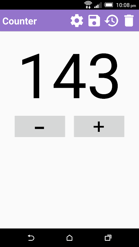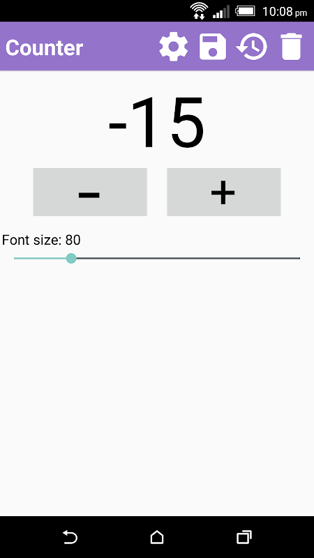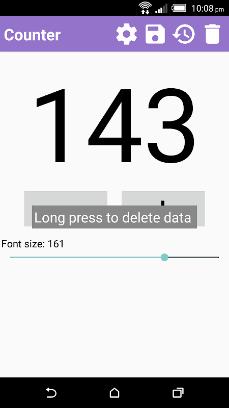 इसके अलावा, आप "सहेजें" बटन दबाकर अपने वर्तमान मूल्य बचा सकता है। फिर अपने रिकॉर्ड इतिहास रिकॉर्ड में बचाया जाएगा। आप इतिहास की जांच करना चाहते हैं, तो बस "इतिहास" बटन दबाएँ। आप इतिहास में 10 रिकॉर्ड करने के लिए बचा सकते हैं। अभिलेखों की संख्या पूरी कर रहे हैं, तो आप अधिक रिकॉर्ड स्टोर करने के लिए नष्ट करने के लिए * इतिहास है। यूजर इंटरफेस के संदर्भ में, उपयोगकर्ताओं, उनकी गिनती के मूल्य का फ़ॉन्ट आकार को समायोजित कर सकते हैं ताकि एप्लिकेशन को अधिक लचीला हो जाता है। आप घर स्क्रीन पर फ़ॉन्ट आकार रूपरेखा तय करने के लिए नहीं करना चाहते, तो आप उन्हें सेटिंग्स में छिपा कर सकते हैं।