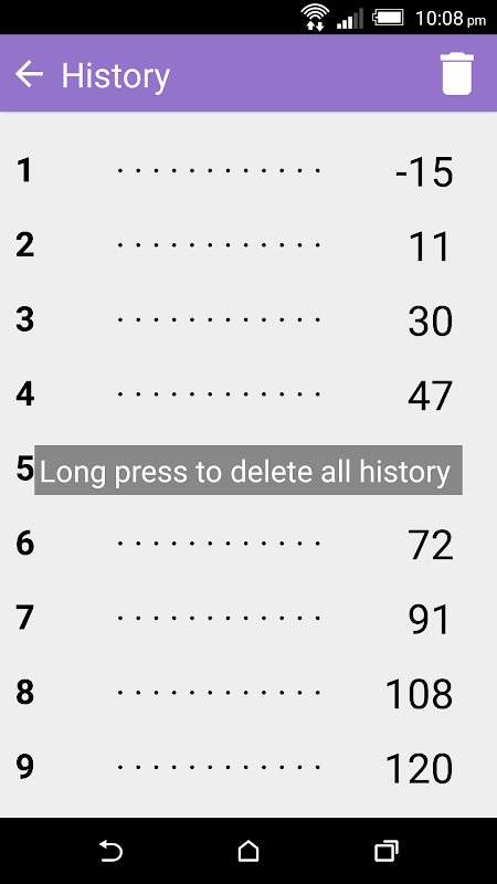 # गलती से डिलीट बटन दबाने से बचने के लिए आप कुछ सेकंड (2-3 सेकंड के बारे में) के लिए प्रेस करने के लिए गिनती के मूल्य या इतिहास को नष्ट करना है।