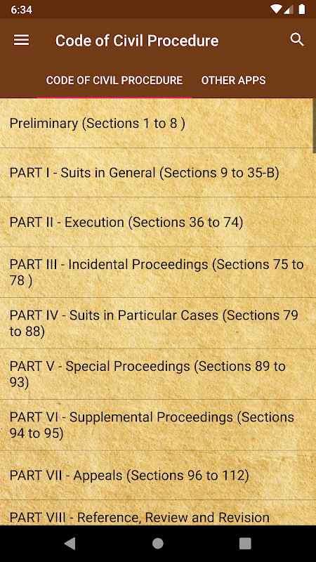 पूर्ण सीपीसी - नागरिक प्रक्रिया संहिता उत्कृष्ट उपयोगकर्ता अनुभव के साथ उपयोगकर्ता के अनुकूल डिजाइन में प्रस्तुत की गई है। अध्यायों एवं अनुभागों में स्पष्ट रूप से विभाजित तथा सभी नियमों/अनुभागों एवं आदेशों का असंपादित पाठ। अव्यवस्था मुक्त डिज़ाइन में स्वाइप जेस्चर के साथ अनुभागों को ब्राउज़ करें जिससे आपको मुख्य सामग्री पर ध्यान केंद्रित करने में मदद मिलेगी। यह ऐप ऑफलाइन मोड में काम करता है