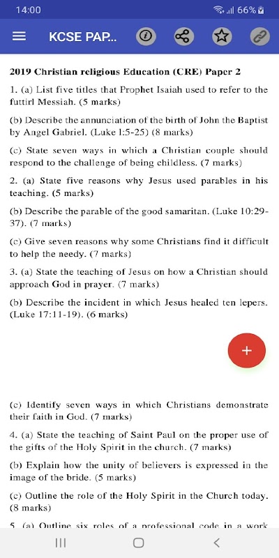 इस मोबाइल एप्लीकेशन में उनके जवाबों के साथ C.R.E KCSE पास्ट पेपर दिए गए हैं।