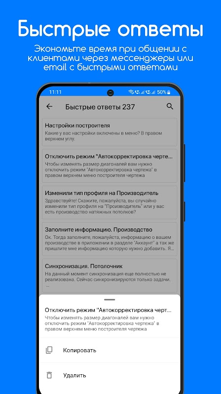 ・ त्वरित प्रतिक्रियाएँ - समान मुद्दों पर तत्काल दूतों या ईमेल के माध्यम से ग्राहकों के साथ संवाद करते समय समय बचाएं। आपको टेक्स्ट टेम्प्लेट प्रतिक्रियाएँ बनाने की अनुमति देता है