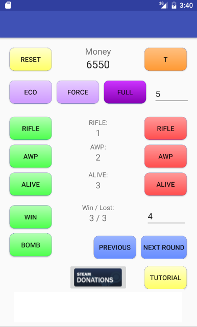 step: 3 : use the buttons on the sides to put in how many rifles and awp’s the enemy has at the end of the round, and how many enemies is alive