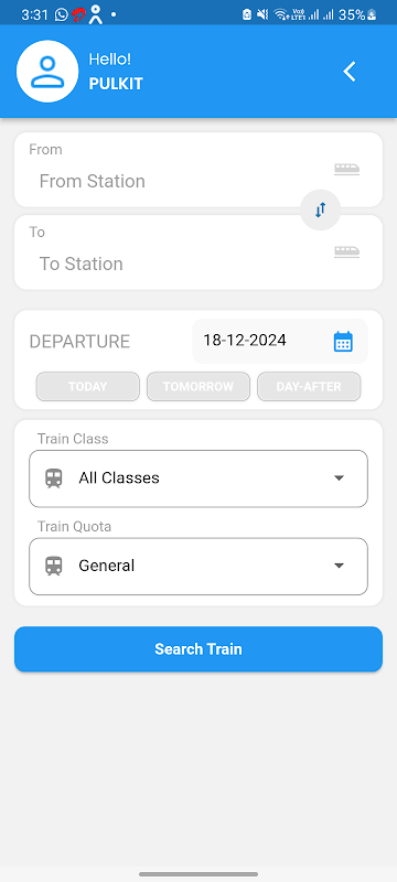 ट्रेन की उपलब्धता, समय, कक्षाएं, किराया और अन्य प्रासंगिक विवरण सीधे ऐप के भीतर जांचें।