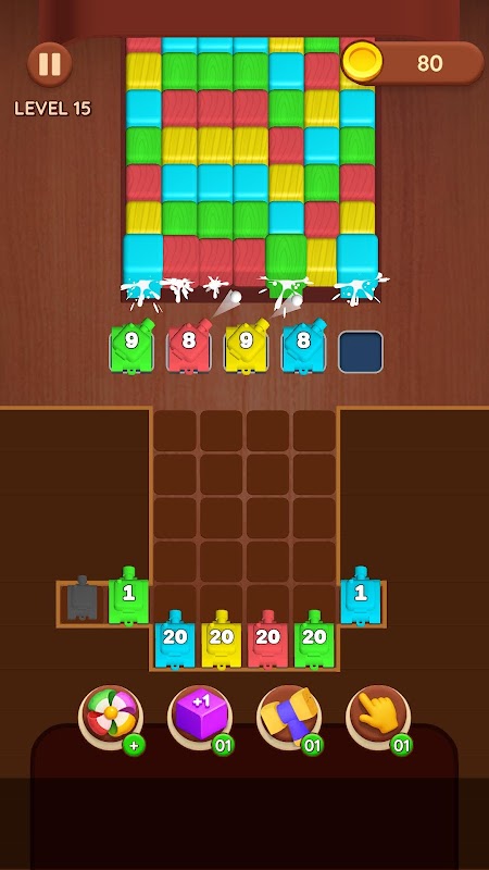 समान रंग के ब्लॉकों को मिलाकर और छांटकर रंगीन ब्लॉक क्यूब्स को फोड़ें