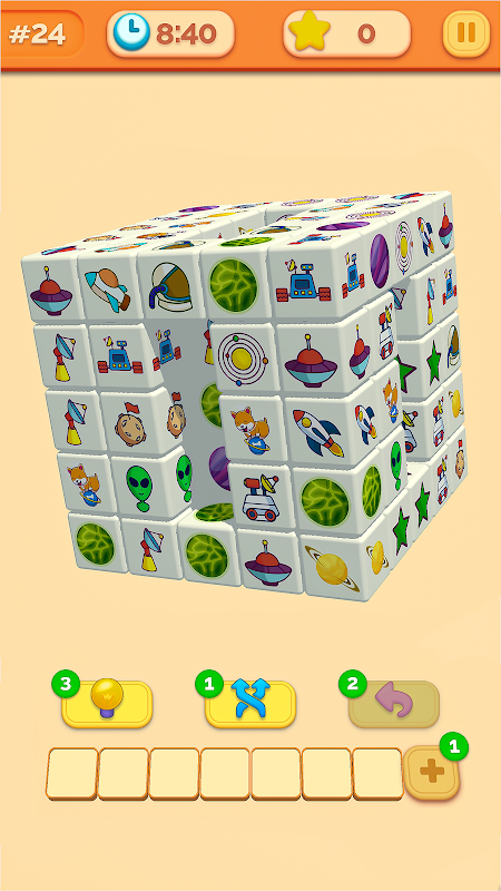 आपका काम 3डी क्यूब को घुमाना, तीन समान टाइलों को ढूँढ़ना और मिलाना और फ़ील्ड को साफ़ करना है!