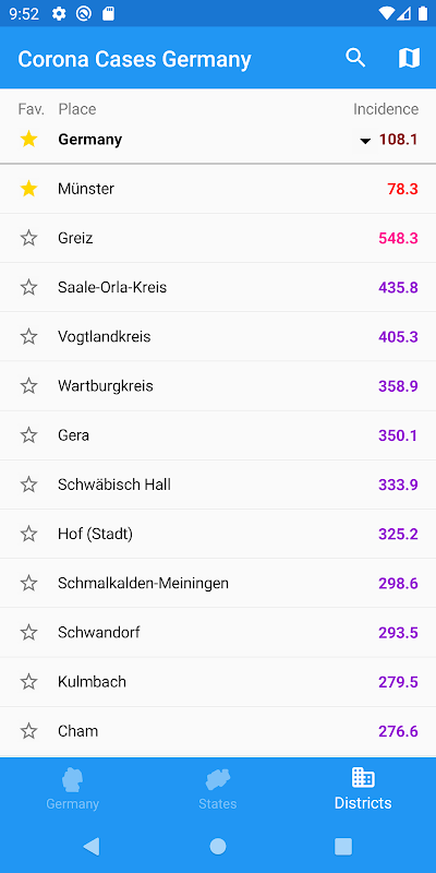 This app delivers the most important data for current Corona (COVID-19) cases in Germany.