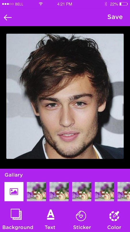 4) Background Twister: pic color from color picker or use background images provided by the app itself,