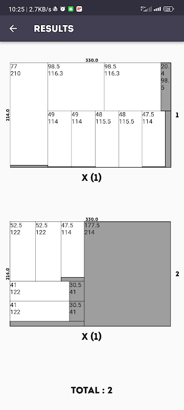 📊 विस्तृत परिणाम: अपशिष्ट को न्यूनतम करते हुए अनुकूलित कट का व्यापक विवरण देखें।