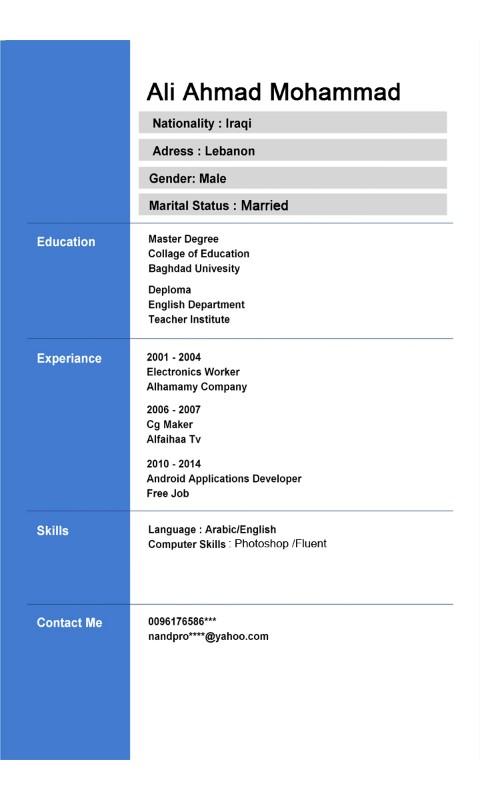 Just open CV Maker application and fill your informations. No registration required! No matter who you are, Our CV Maker will automatically format them onto your favorite resume templates.