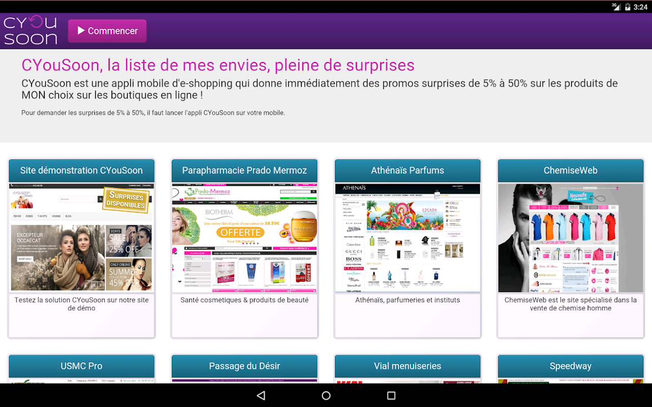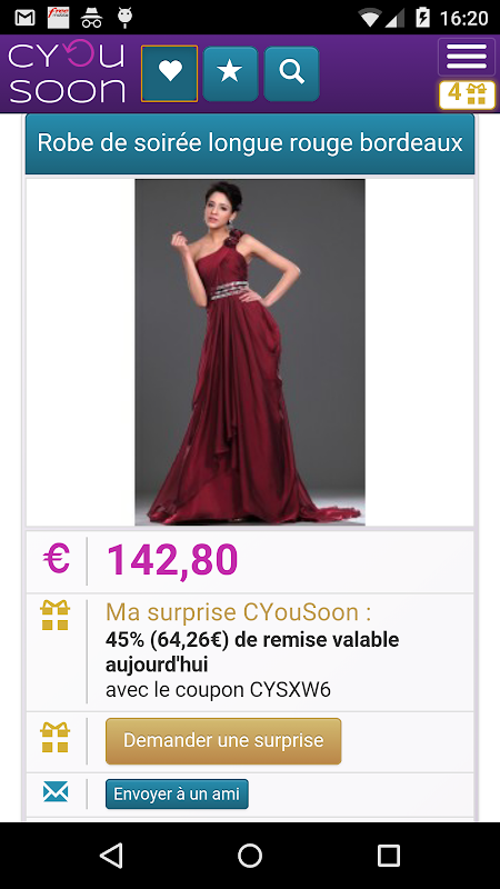 L'appli CYouSoon donne immédiatement une promo surprise entre 5% et 50%