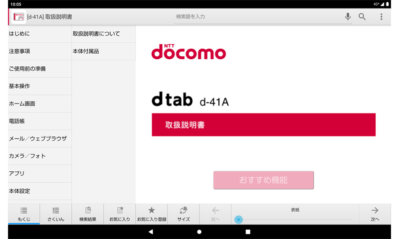 本アプリケーションはd-41A用の取扱説明書(eトリセツ)ですので他の機種では起動できません。