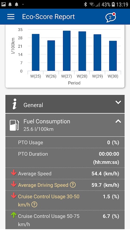 • Here you can see figures relating to your fuel consumption, which also influences your Eco-Score.
