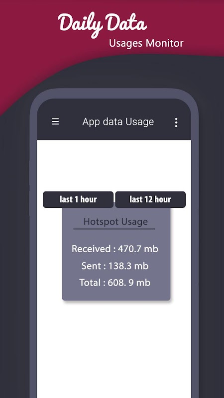 डेटा उपयोग मॉनिटर आपके डेटा उपयोग का प्रबंधन करने के लिए एक उपयोगकर्ता-अनुकूल ऐप है। डेटा उपयोग मॉनिटर आपको अपने दैनिक डेटा ट्रैफ़िक को सही ढंग से मापने में मदद करता है, और डेटा को समझने में आसान तरीके से विश्लेषण करता है। जब आप डेटा ट्रैफ़िक सीमा तक पहुँच रहे होते हैं, तो यह चेतावनी भी देता है, जो आपको डेटा के अधिक उपयोग से बचाता है।