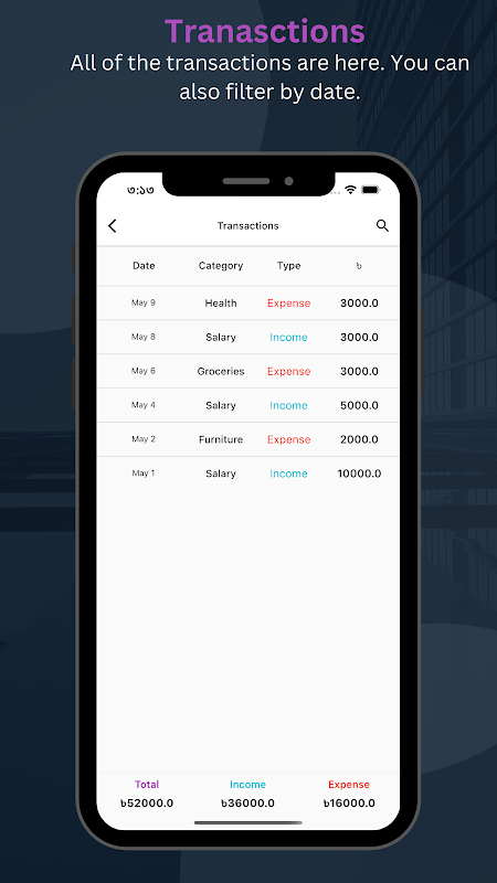 2. ऐप स्वचालित रूप से आय और व्यय से आपकी शेष राशि की गणना करेगा।