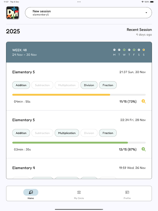 - प्रत्येक सत्र में हल किए गए प्रश्नों को देखें