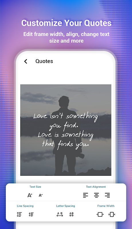 डिज़ाइन किए गए उद्धरणों को अपने मोबाइल वॉलपेपर के रूप में उपयोग करें या उन्हें सोशल मीडिया पर अपने दोस्तों के साथ साझा करें।