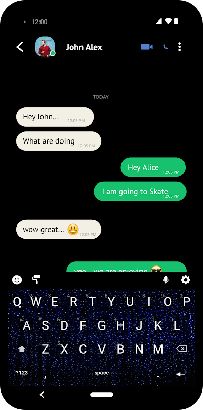 डार्क नियॉन पृष्ठभूमि वाले अपने डार्क मोड के लिए हमारे डार्क थीम वाले कीबोर्ड का उपयोग करें।
