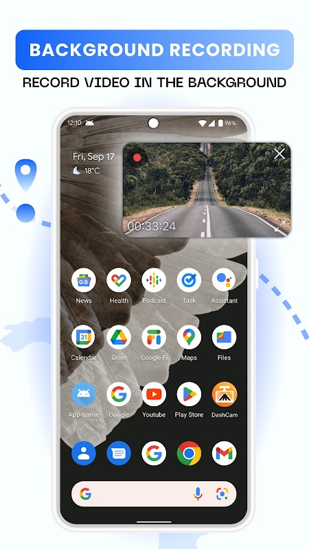 ⭐️ सहज मल्टीटास्किंग: नेविगेशन ऐप्स का इस्तेमाल करें, वेब ब्राउज़ करें या कॉल करें, जबकि डैश कैम बैकग्राउंड में आपकी यात्रा रिकॉर्ड करता रहता है।