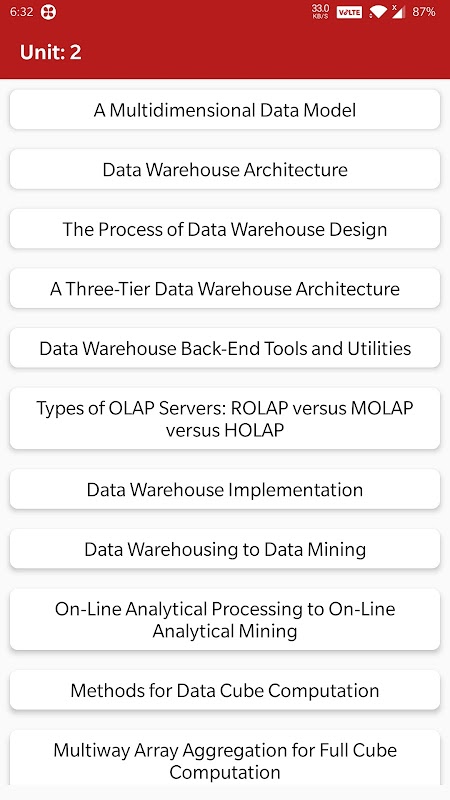 डेटा वेयरहाउसिंग और डेटा माइनिंग ऐप में शामिल कुछ विषय हैं: