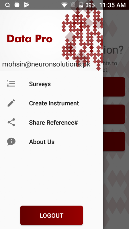 Data Pro is an information collection application, where you can collect information by asking questions .You can make survey dynamically by logging into your account, if don't have any you can create one. Alot of variety has been given in questions like you can add simple questions, paragraphs, radio buttons, check boxes, dropdown list, rating bar or you can also add instruments.So any thing making you curious just make a survey,ask that thing an throw it in public to get the answer and public opinion.After making a survey you will get the reference number against that survey also that number will be saved in your mobile clipboard.You can share that reference number with people from app through you desired platform(message, whatsapp, gmail, facebook, instagram ,snapchat etc).People can access survey using the reference number.