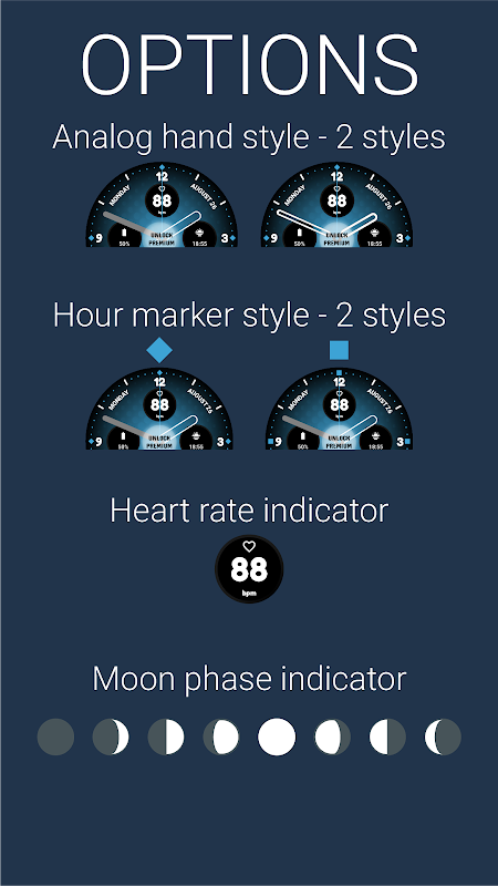 वॉच फेस के सभी अनुकूलन और विकल्पों का पता लगाने के लिए, आप Google Play स्टोर पर इस वॉच फेस का पूर्ण संस्करण पा सकते हैं।