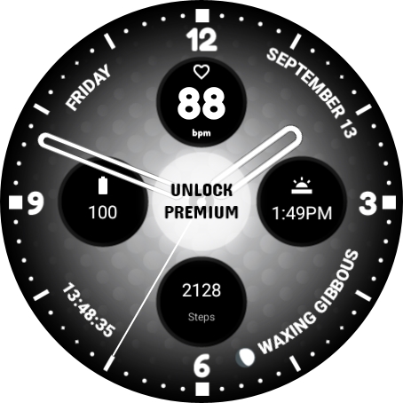 यह डेटा वॉच फेस का एक मुफ़्त संस्करण है जो आपको मुफ़्त विकल्पों को आज़माने और यह जांचने की अनुमति देता है कि यह आपकी घड़ी पर कैसा दिखता है।