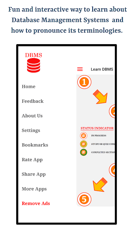 ऐप आपको अंग्रेजी भाषा का उपयोग करके डेटाबेस मैनेजमेंट सिस्टम्स में उपयोग की जाने वाली शब्दावली का सही उच्चारण सीखने में मदद करेगा। इस ऐप की मुख्य विशेषताएं निम्नलिखित हैं