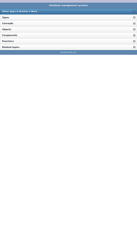 Best thing about this app is that it is very well categorized. Every subject has their own category pages along with other subjects in the same category. Enjoy learning about Database management systems