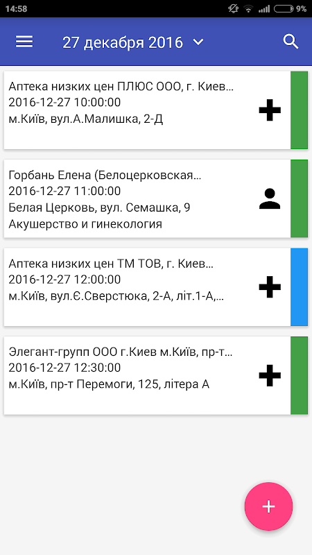 Приложение позволяет вести справочники клиентов, адресов, задач.