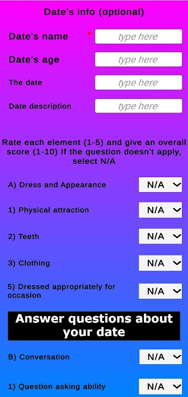 आपकी तिथियों को रेट करने के लिए एक सरल ऐप