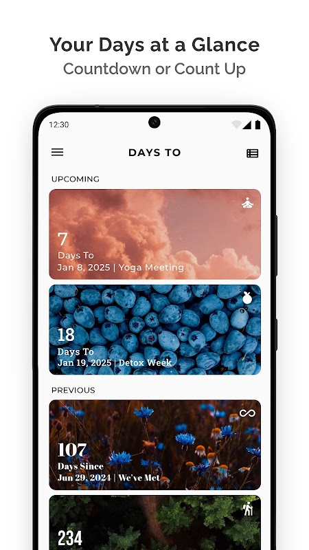 फिर कभी कोई महत्वपूर्ण तारीख न चूकें! डेज़ टू के साथ आपके ईवेंट की उलटी गिनती!
