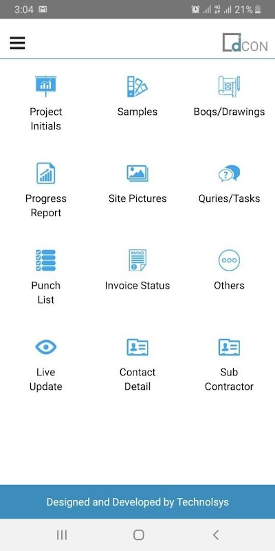 This Android application will let the clients of the company to manage and track the performance and activities happening on their premises. Information includes invoices, site pictures, samples of the materials used etc. This App has a login system so that only the clients allowed can login and see their specific information and communicate.