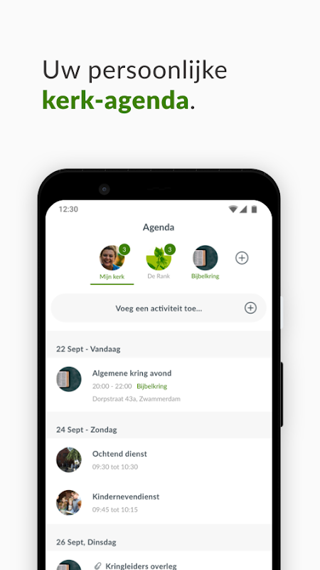 हमारे अद्वितीय समूह संरचना के लिए धन्यवाद, हम चर्चों को बेहतर संवाद करने में मदद करते हैं। पूरे समुदाय के साथ, बल्कि आपस में भी। आप स्वयं समूह जोड़ सकते हैं और लोगों को ऐसा करने के लिए आमंत्रित कर सकते हैं। एक स्मार्ट समयरेखा सुनिश्चित करती है कि प्रत्येक उपयोगकर्ता व्यक्तिगत और प्रासंगिक जानकारी देखता है।