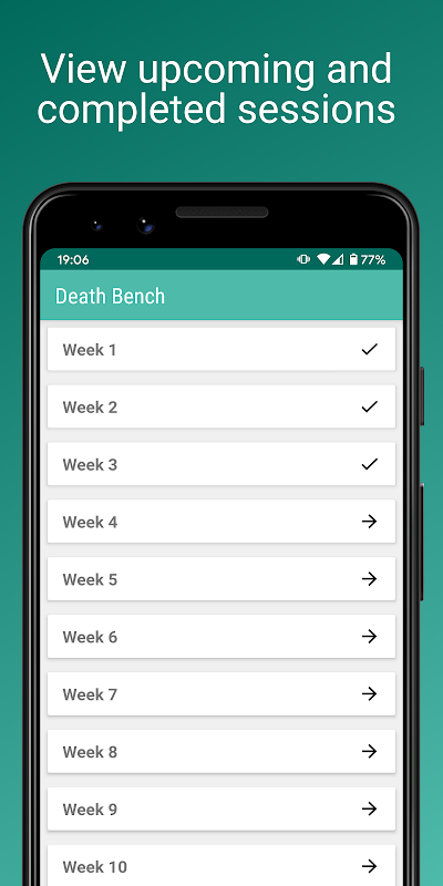 यह एप्लिकेशन आपके वर्तमान एक प्रतिनिधि अधिकतम के आधार पर आपके लिए चक्र उत्पन्न करेगा और आपको प्रत्येक सत्र और सप्ताह के माध्यम से अपनी प्रगति को ट्रैक करने की अनुमति देगा। आपके पूर्ण चक्रों का एक पूरा इतिहास संग्रहीत है और आप एक ग्राफ पर अपनी बढ़ती बेंच प्रेस पावर देख सकते हैं।