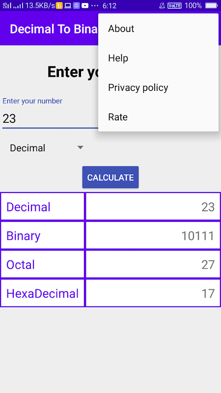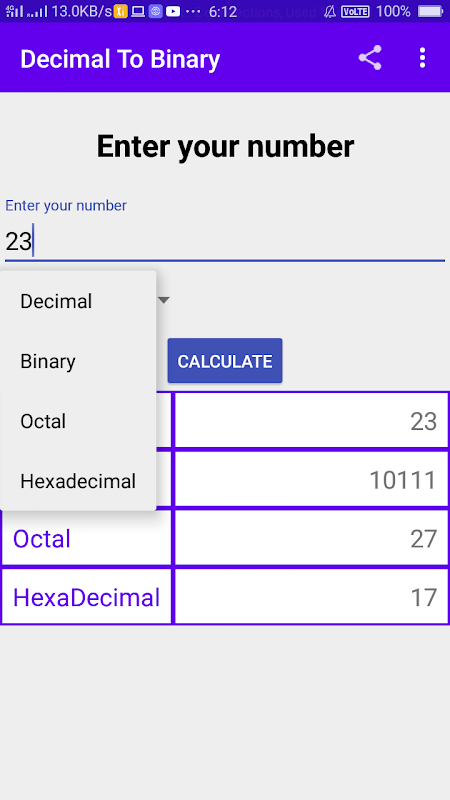 दशमलव संख्याओं को बाइनरी, ऑक्टल, हेक्साडेसिमल और इसके विपरीत में कनवर्ट करें।