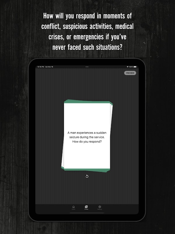 सुरक्षा और सुरक्षा परिदृश्यों के लिए डिसीजन डेक आपके जेब के आकार के सिम्युलेटर का परिचय देता है। आपकी आलोचनात्मक सोच, निर्णय लेने और निर्णय लेने को चुनौती देने के लिए तैयार किए गए, ये डेक आपको संघर्ष और संकट से लेकर संदिग्ध घटनाओं और जीवन के लिए खतरा पैदा करने वाली आपात स्थितियों तक वास्तविक जीवन की स्थितियों से रूबरू कराते हैं। वे महत्वपूर्ण प्रश्न पूछते हैं आप क्या करेंगे? और आपकी क्या प्रतिक्रिया होगी?