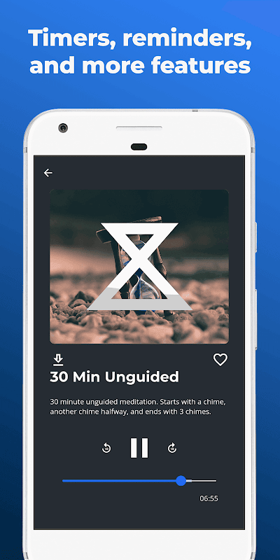 - ध्यान टाइमर उस समय के लिए जब आप बिना मार्गदर्शन के ध्यान करना पसंद करेंगे