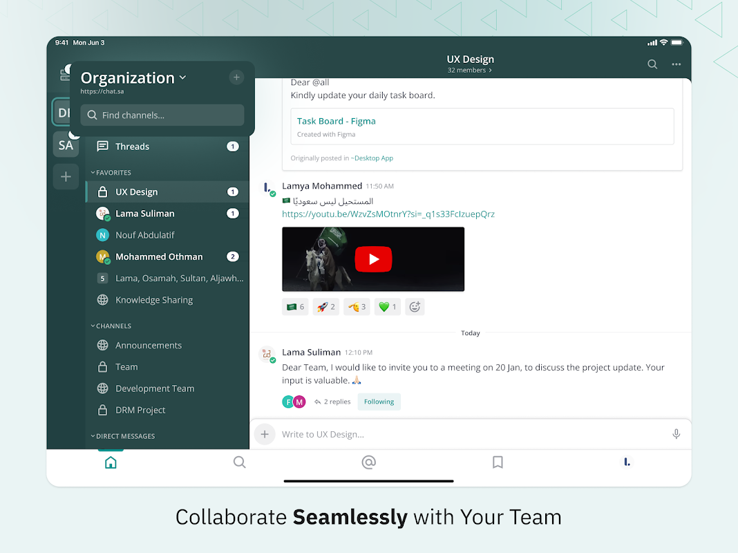 यह उत्पाद ग्राहकों को सिस्टम के भीतर टीम के सदस्यों के बीच संचार और सहयोग बढ़ाने में सक्षम बनाता है, जिससे उत्पादकता में वृद्धि और सुव्यवस्थित वर्कफ़्लो में योगदान होता है। यह एक लचीला, एकीकृत और सुरक्षित कार्य वातावरण प्रदान करने के लिए उपकरणों और सुविधाओं की एक श्रृंखला प्रदान करता है, जिससे उपयोगकर्ता किसी भी समय, कहीं से भी आसानी से संवाद कर सकते हैं। यह टीम के सदस्यों के बीच सूचना के प्रवाह को बढ़ाते हुए फ़ाइलों, छवियों और लिंक को निर्बाध रूप से साझा करने की सुविधा भी देता है। इसके अतिरिक्त, असीमित टीमें और संचार चैनल बनाए जा सकते हैं, जिससे काम को व्यवस्थित करना और विभिन्न टीमों के बीच प्रभावी ढंग से समन्वय करना आसान हो जाता है।