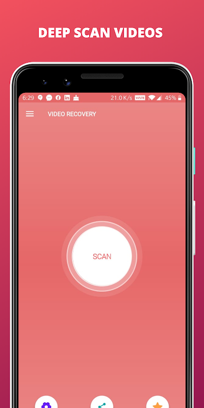 महत्वपूर्ण वीडियो को आकस्मिक रूप से हटाना तनावपूर्ण हो सकता है, खासकर जब उन्हें मूल गुणवत्ता के साथ पुनर्स्थापित करना असंभव लगता है। हमारा डिलीट किया गया वीडियो रिकवरी ऐप गहन स्कैन के साथ इस प्रक्रिया को सरल बनाता है, जिससे आपके पसंदीदा वीडियो की आसानी से रिकवरी संभव हो जाती है। ऐप आपके हटाए गए वीडियो को पुनः प्राप्त करने के लिए उन्नत एल्गोरिदम के साथ आपके कैश और फ़ोन मेमोरी को स्कैन करता है।